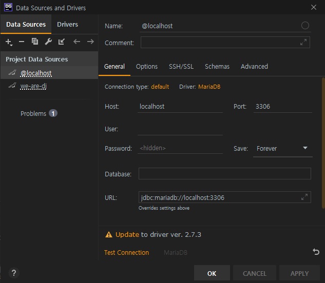 url : jdbc:mariadb://엔드포인트:3306/DB스키마