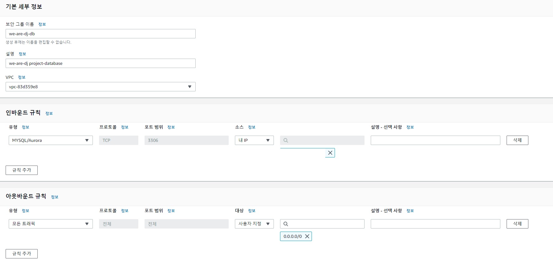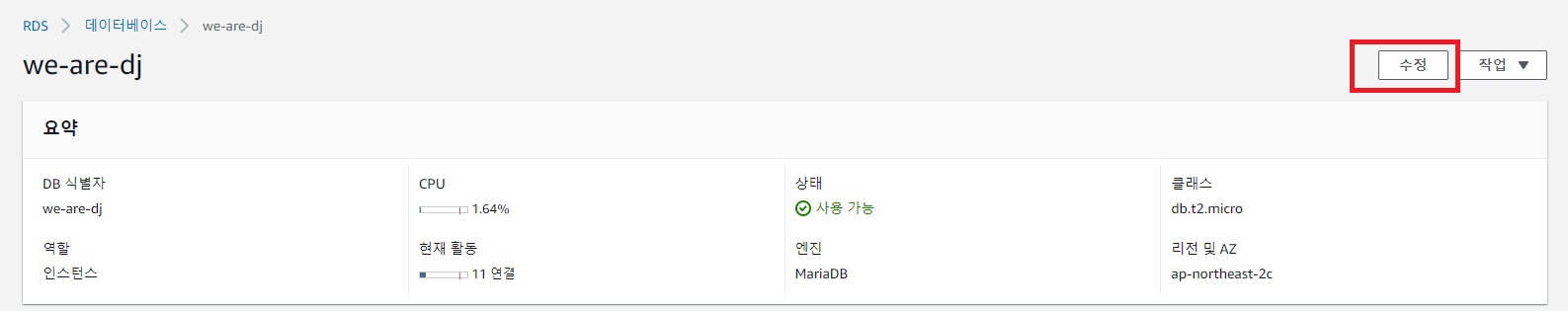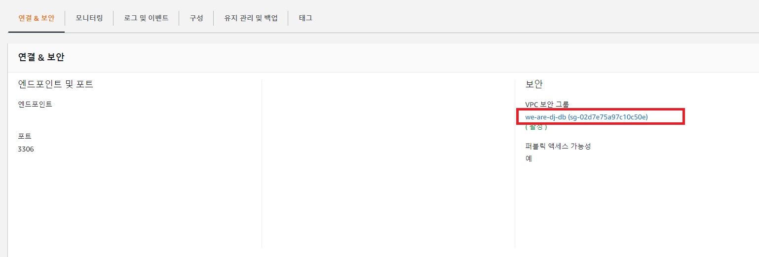 이제 외부에서 이 DB에 접속이 가능하도록 보안 그룹을 수정해봅시다.
