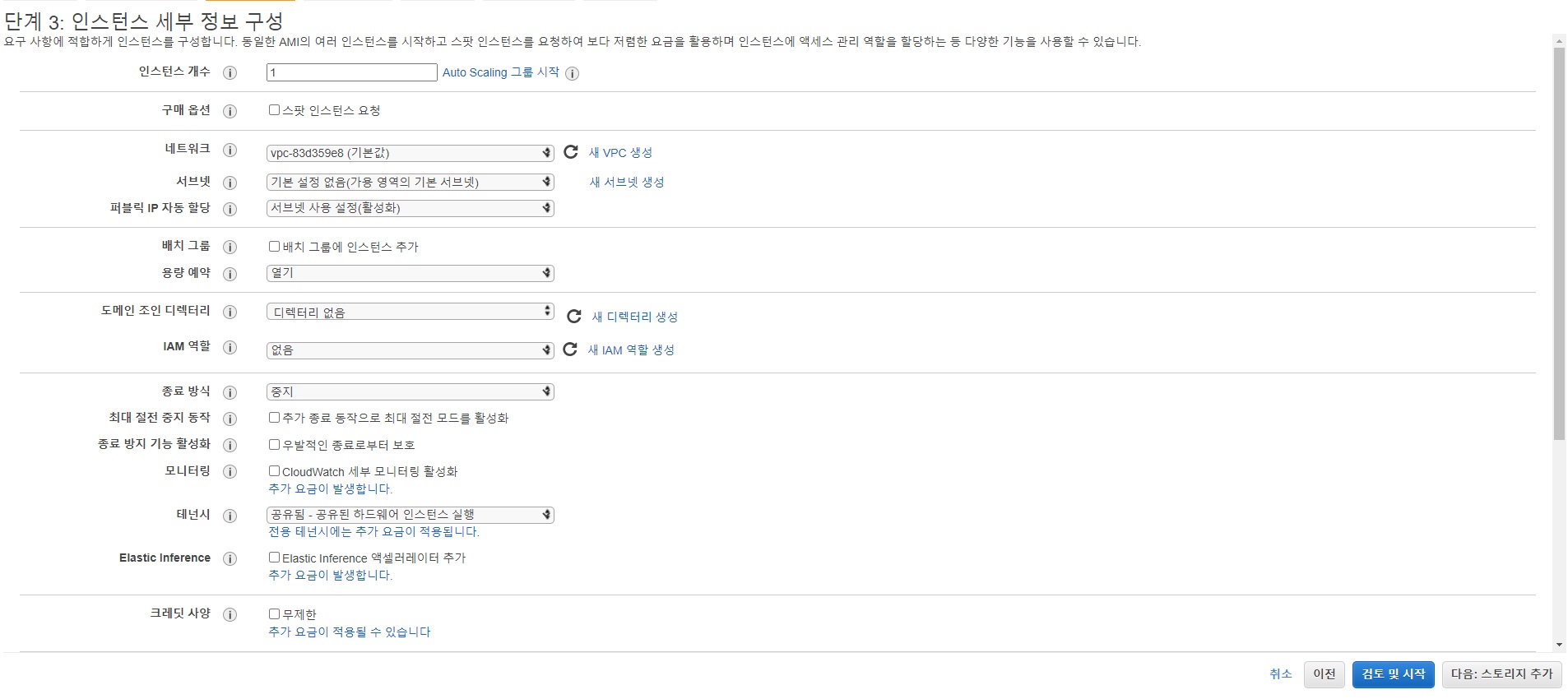 여러 가지 인스턴스 유형을 고를 수 있는 화면이 나옵니다.
