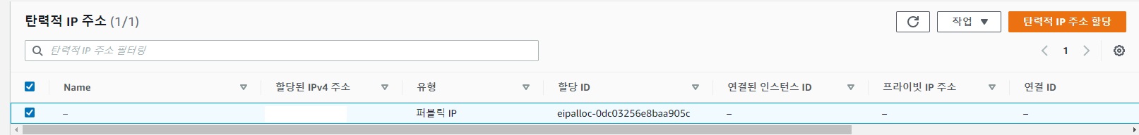 생성된 인스턴스에 고정아이피 ( 탄력적 IP ) 붙여줍시다.