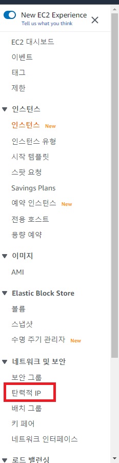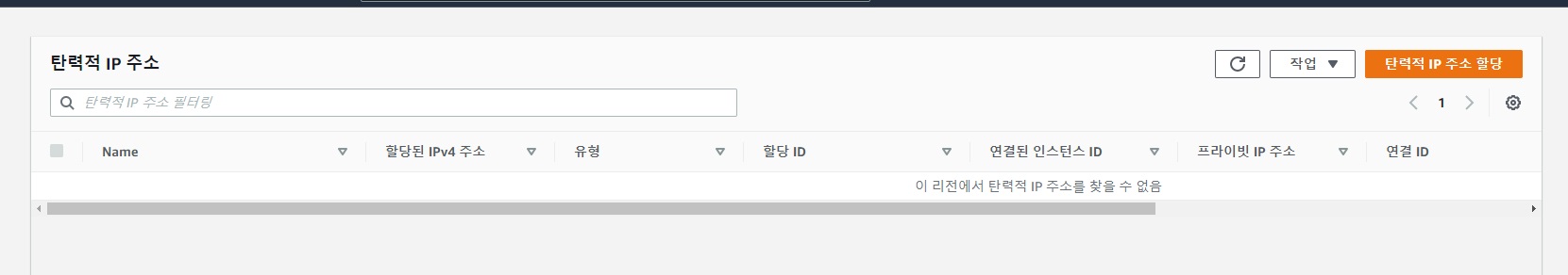 ec2 메뉴에서 탄력적 IP탭을 클릭해줍시다.