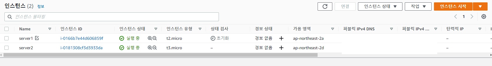 생성 후 ec2 메뉴로 돌아오면 인스턴스가 생성된 화면이 보입니다.