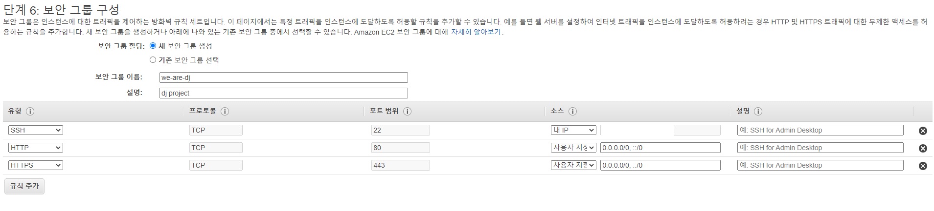해당 인스턴스의 보안 그룹을 지정해줍시다.