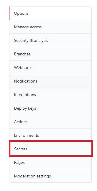 Repository의 setting 으로 이동한 후 secrets 메뉴로 이동합시다.