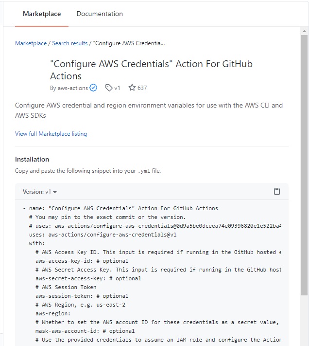 uses: aws-actions/configure-aws-credentials@v1