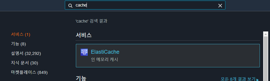 aws 검색창에 ElastiCache 를 검색해줍니다!