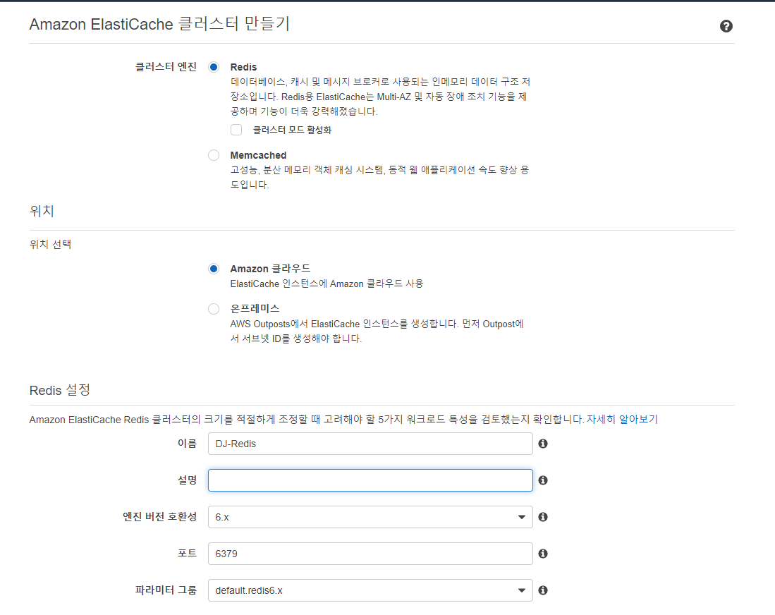 이번 포스팅에서는 aws redis 를 생성해보겠습니다